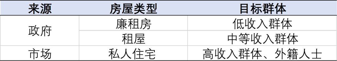 表:新加坡住房供應(yīng)體系