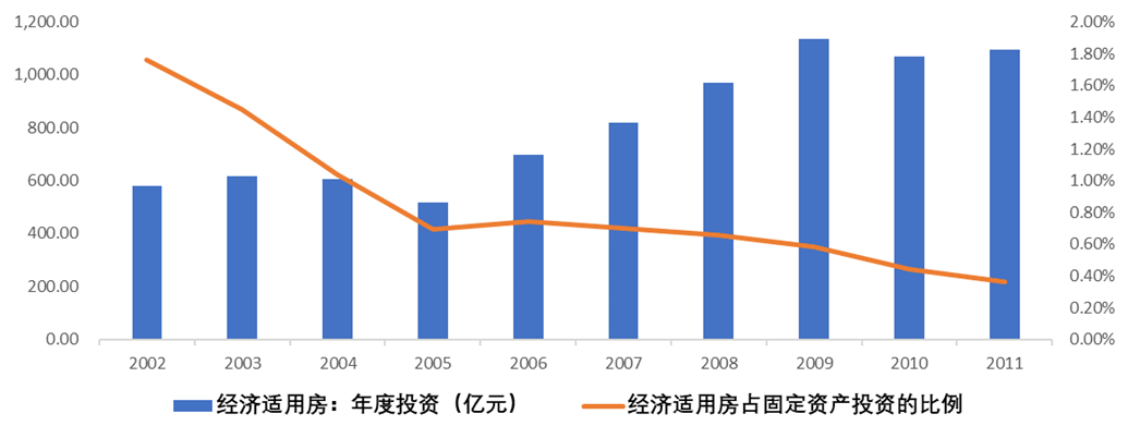 圖:過(guò)往年份經(jīng)濟(jì)適用房投資占固定資產(chǎn)投資比例